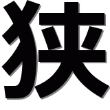 キョウ | コウ | せま.い | せば.める | せば.まる | さ | はざ | cramped | narrow | contract | tight